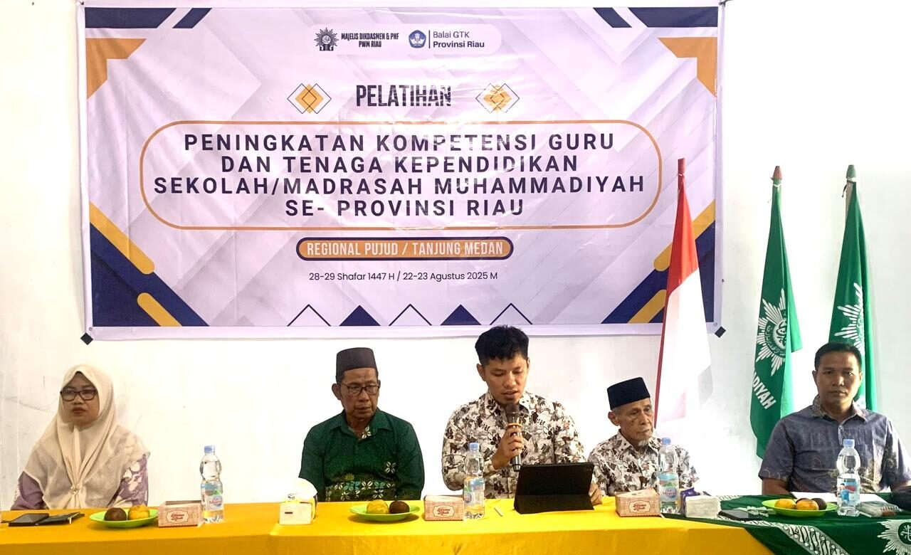 Rokan Hilir – Majelis Pendidikan Dasar, Menengah, dan Pendidikan Non Formal (Dikdasmen dan PNF) Pimpinan Wilayah Muhammadiyah (PWM) Riau kembali melanjutkan program pelatihan peningkatan kompetensi guru dan tenaga kependidikan Muhammadiyah bekerja sama dengan Balai Guru dan Tenaga Kependidikan (BGTK) Provinsi Riau. Kegiatan kali ini difokuskan untuk wilayah regional Pujud–Tanjung Medan dan berlangsung pada Jumat–Sabtu, 22–23 Agustus 2025.